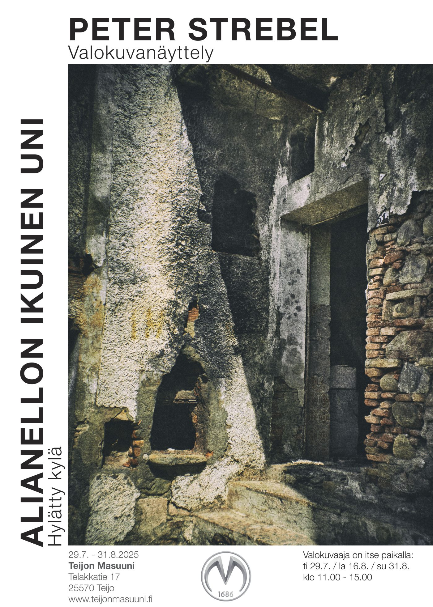 29.7.-31.8.2025 pohjakerroksen Obscurassa Peter Strebelin valokuvia maanjäristyksessä autioituneesta italialaiskylästä. “Aina kun käyn Alianellossa, koen astuvani keskelle historiaa, menneeseen aikaan. Ja kuvatessani siellä yhdistän mielelläni nykytekniikkaa ja vanhoja kuvaustapoja. Kun kävelen Alianellon kujia ja tutkin sen taloja ja yksityiskohtia, mietin ketkä ovat asuneet siellä, miten he ovat eläneet, syntyneet ja kuolleet?”