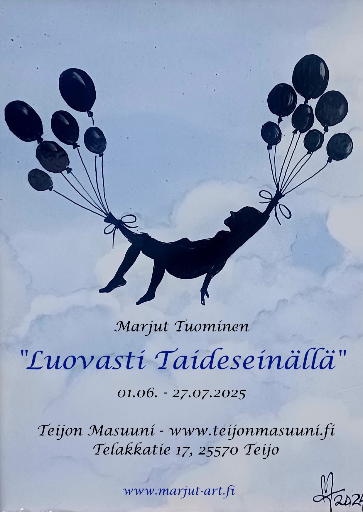 1.6.-27.7.2025 Teijon Masuunin taideputiikin puolella kokeillaan tänä vuonna uudentyyppistä taideseinä -myyntinäyttelytoimintaa. Kaikki taideseinän näyttelytyöt ovat ostettavissa heti mukaan – muista näyttelyistämme poiketen. Ensimmäisenä taideseinällä nähdään Marjut Tuomisen posliinimaalauksia kesä-heinäkuun ajan.