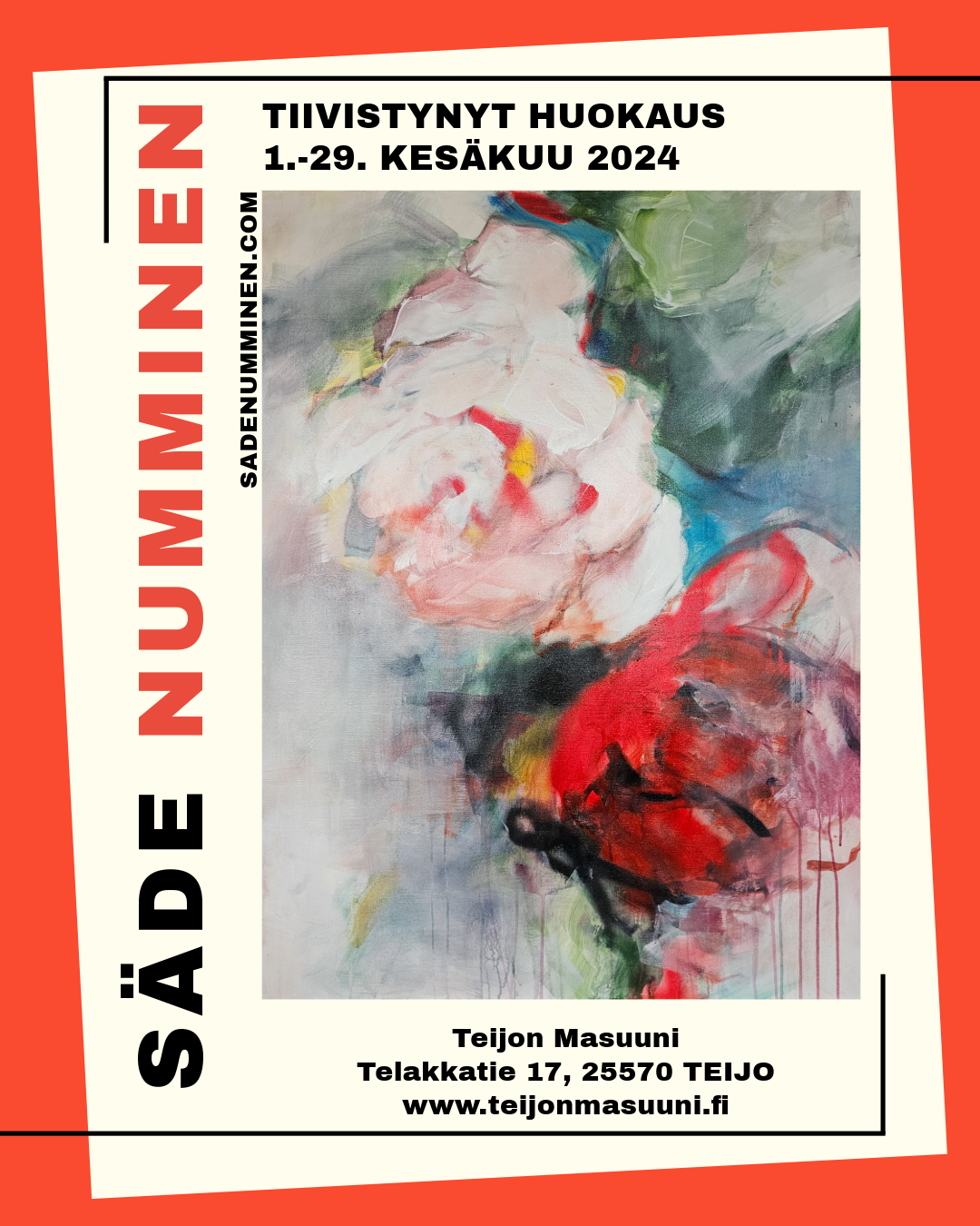 2.7.-26.7.2024 aulan ja kahvilan tiloissa Kristiina Marian ekspressiivisiä ja värikylläitä maalauksia, joiden inspiraation lähteenä toimivat aistihavainnot, sisäinen- ja ulkoinen maailma, mielikuvitus, minuus ja emootiot. “Taiteilijan kokema, tuntema ja havaitsema materiaali ja maailma muodostuu maalaukseksi ja katsoja tulkitsee sen omista lähtökohdistaan ja kokemusmaailmastaan käsin. Tämä synnyttää ainutlaatuisen ja monikerroksisen tulkinnan jokaisen maalauksen aiheelle ja luo merkityksellisen hetken taiteilijan ja katsojan välille.”