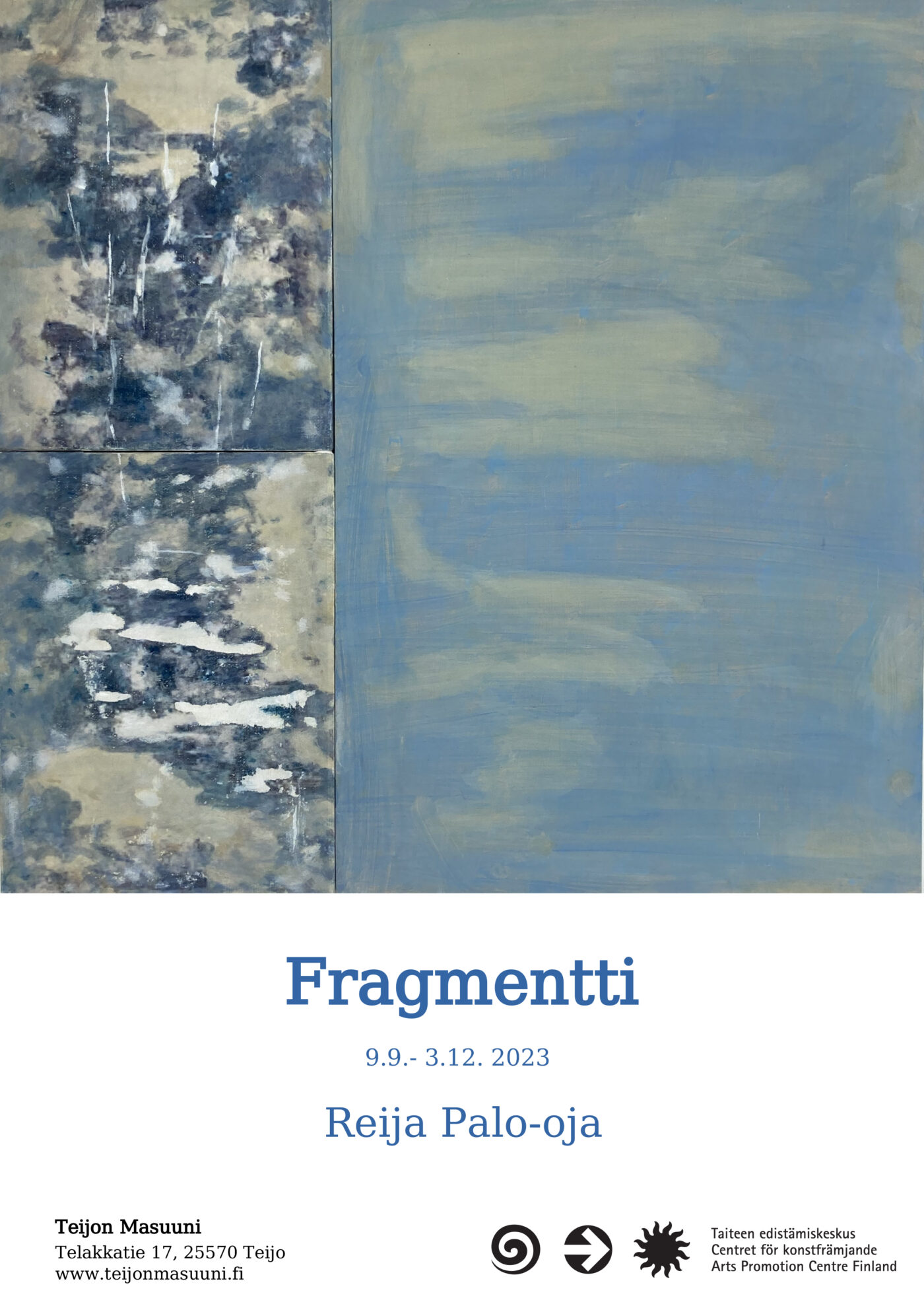 9.9.-3.12.2023 Studiossa Reija Palo-ojan teoksissa korostuu erityisesti taiteellisen prossesin sekä ilmaisun tutkiminen myös erilaisten materiaalien ehdoilla. “Uusissa teoksissa olen siirtynyt kuvitteelliseen taloon, jossa seinien halkeamat peittämisestä huolimatta piirtyvät esiin. Teoksista rakentuu kuin fragmentteja talon seinistä ja ajan patinoimista kerroksista. Vertauskuvallisesti teokset muodostavat narratiivisen tason, kuin yhden henkilön tai laajasti sukupolvien tarinan, erilaisten jälkien muodossa. Teosten taustalla vaikuttavat omakohtaiset kokemukset sekä ensisijaisesti ajatus siitä kuinka taide toimii heijastuspintana.”
